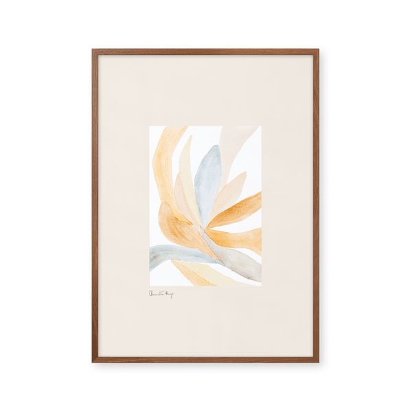 The Frame dimensions indicate the size of the art prints they fit. The outer dimensions of the Frame itself will be slightly larger, depending on the chosen profile and size. The Frames in sizes A4 to 50x70 cm have a width and depth of 1.5 cm and come with real glass. In sizes over 70x100 cm, the Frames measure 2 cm in both width and depth and come with plexiglass that mimics real glass.