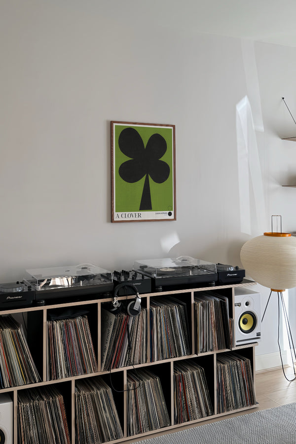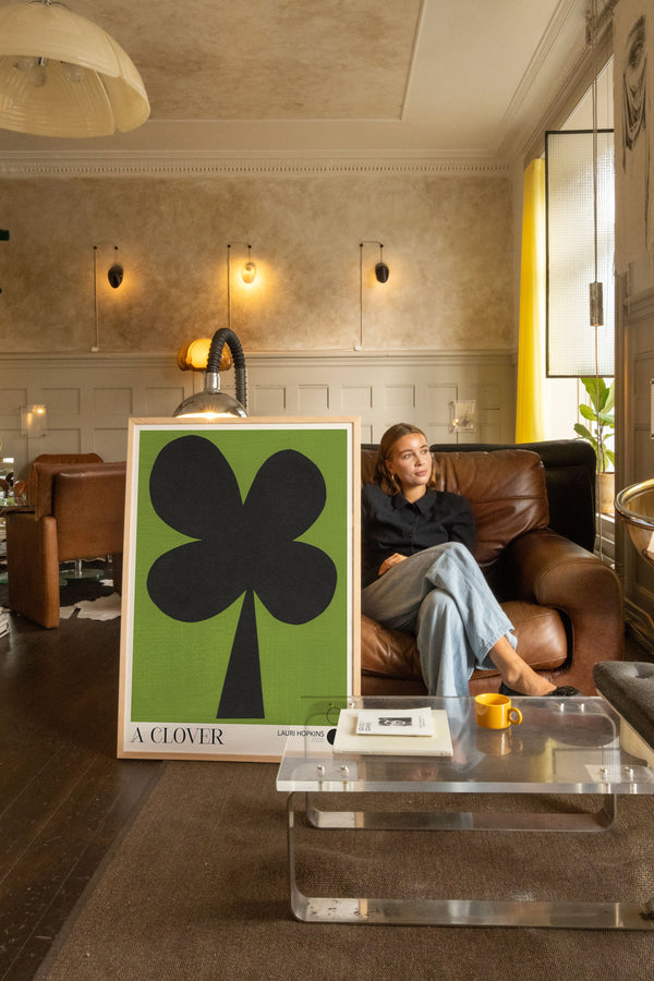 Kunstplakaten: “A Clover” af kunstneren Lauri Hopkins forener papirklip og collage i en sanselig og harmonisk komposition. Værket er eksklusivt skabt til Peléton og står åbent for fri fortolkning.