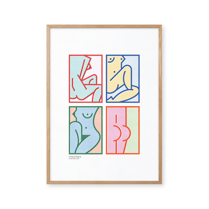 Kunstplakaten: “A Study of Postures” af kunstneren Humam Abou Asali er en illustreret plakat der er eksklusivt lavet til Peléton. Det har været betydningsfuldt for Humam Abou Asali, at plakaten står til fri fortolkning.