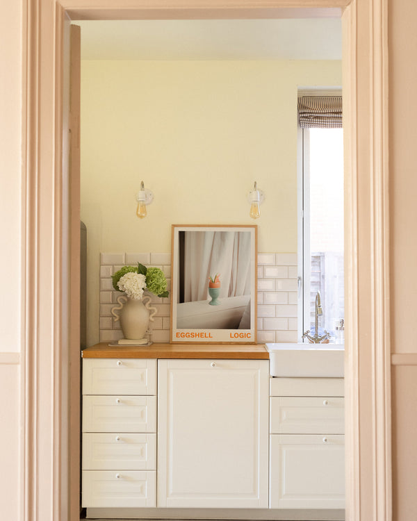 Kunstplakaten: “Eggshell Logic” af kunstnerne Frederik Højfeldt er en grafisk illustreret plakat der er eksklusivt lavet til Peléton. Det har været betydningsfuldt for dem, at plakaten står til fri fortolkning. Dette værk er en del af en samling af eksklusive kunstplakater der udtrykker minimalisme og enkelhed.