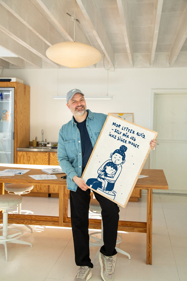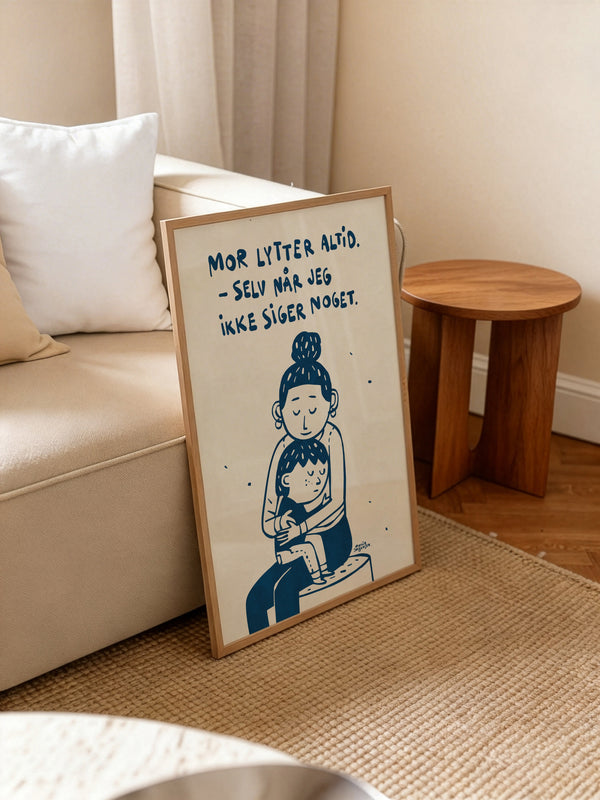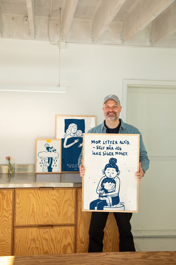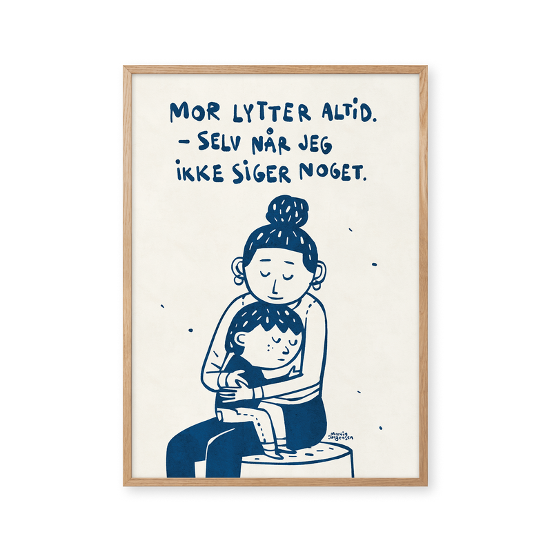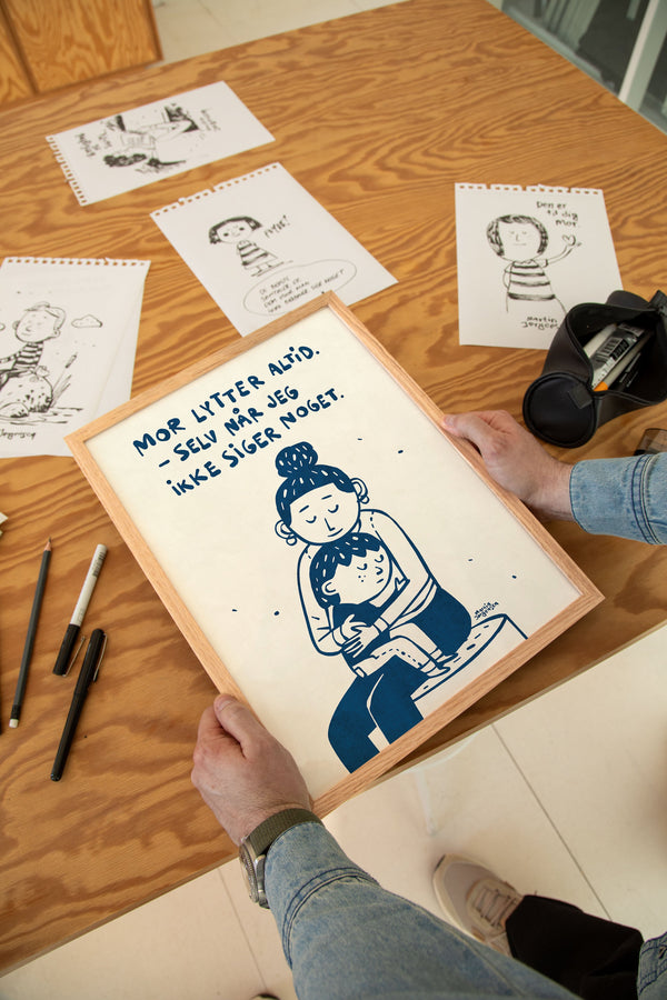 Kunstplakaten: “Mor Lytter Altid” af kunstneren Martin Jørgensen er en illustreret plakat der er kurateret af Peléton. Det har været betydningsfuldt for Martin Jørgensen, at plakaten står til fri fortolkning.