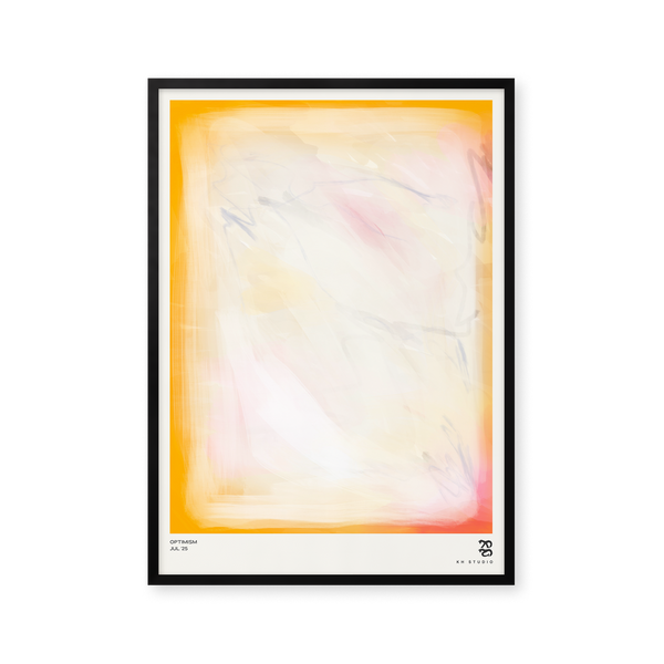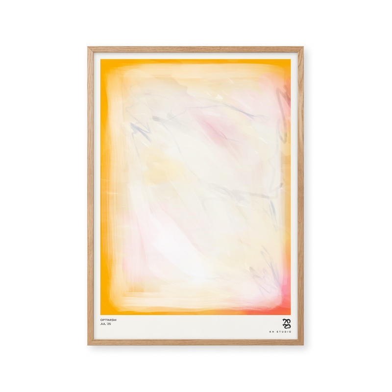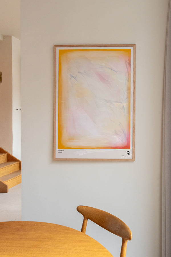 Karla Hymans kunstplakat "Optimism" er en del af en farverig kollektion udviklet specielt til Peléton, og som hylder legende kompositioner og stærke farvevalg. Hendes værker er præget af en enkel og abstrakt stil, hvor form og farver spiller tæt sammen.