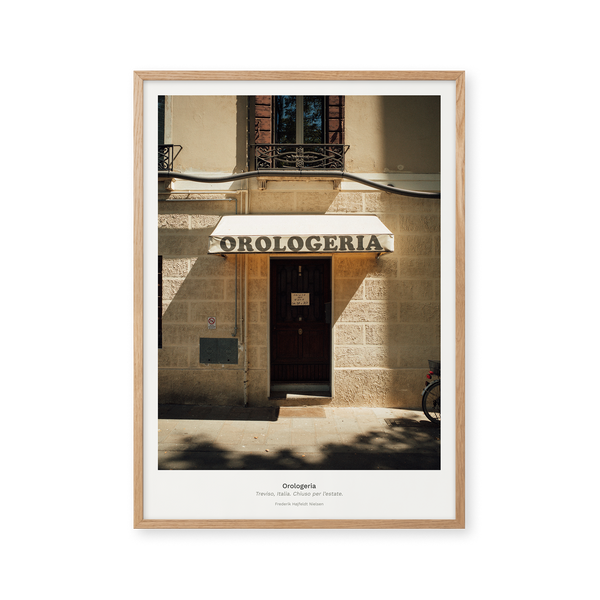Kunstplakaten: “Orologeria” af kunstnerne Frederik Højfeldt er en grafisk illustreret plakat der er eksklusivt lavet til Peléton. Det har været betydningsfuldt for dem, at plakaten står til fri fortolkning. Dette værk er en del af en samling af eksklusive kunstplakater der udtrykker minimalisme og enkelhed.