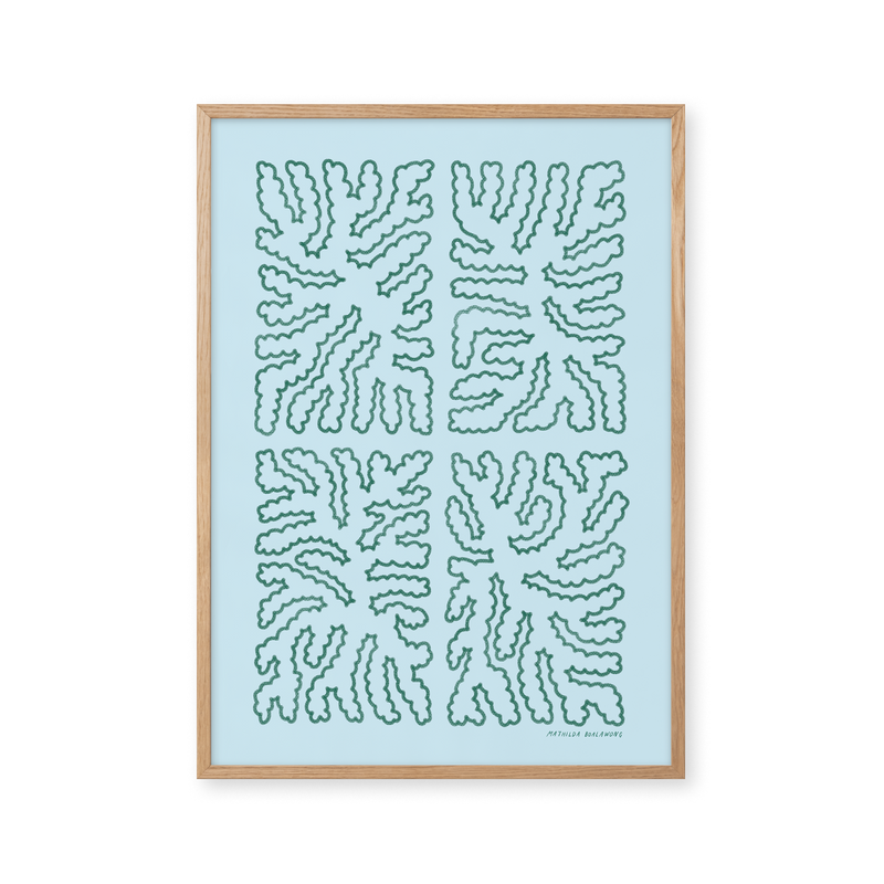 Alle værker bliver trykt og indrammet på bestilling i vores produktion i København. Vi sender inden for 2-4 hverdage, så du hurtigt kan nyde din nye kunstplakat derhjemme – uden at gå på kompromis med kvalitet eller finish.
