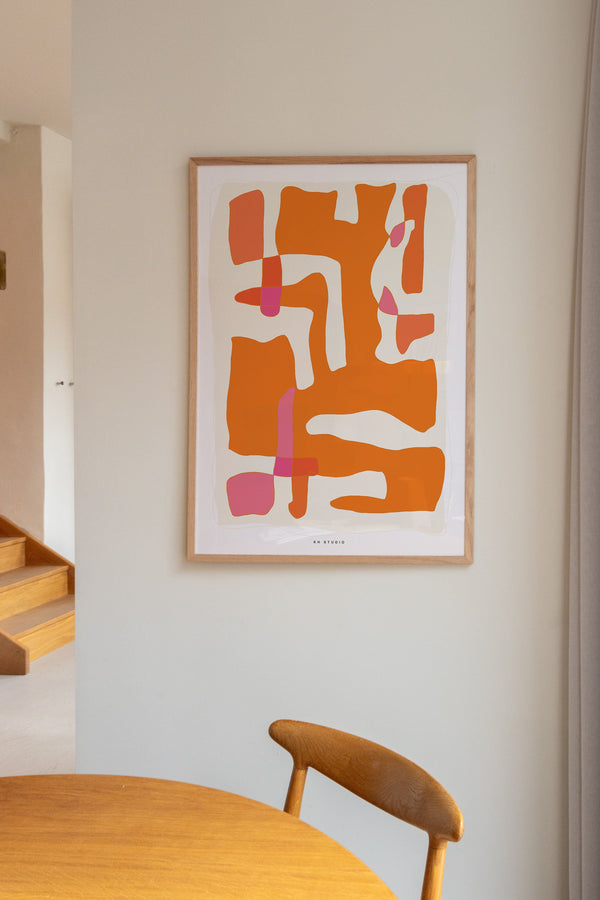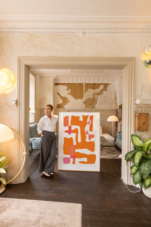Karla Hymans kunstplakat "Sunset Stroke" er en del af en farverig kollektion udviklet specielt til Peléton, og som hylder legende kompositioner og stærke farvevalg. Hendes værker er præget af en enkel og abstrakt stil, hvor form og farver spiller tæt sammen.