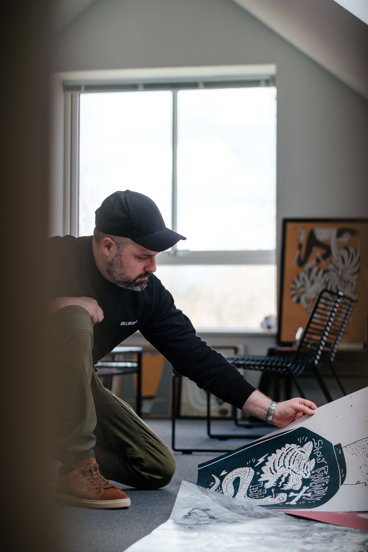 Martin's creative process often starts with random strokes, allowed to flow freely, without too much consideration. This impulsiveness gives his posters an energetic and naive style, where the skewness becomes an important part of the expression. His works radiate both calm and curiosity, inviting the viewer to ask questions, while opening up for an imaginative interpretation.