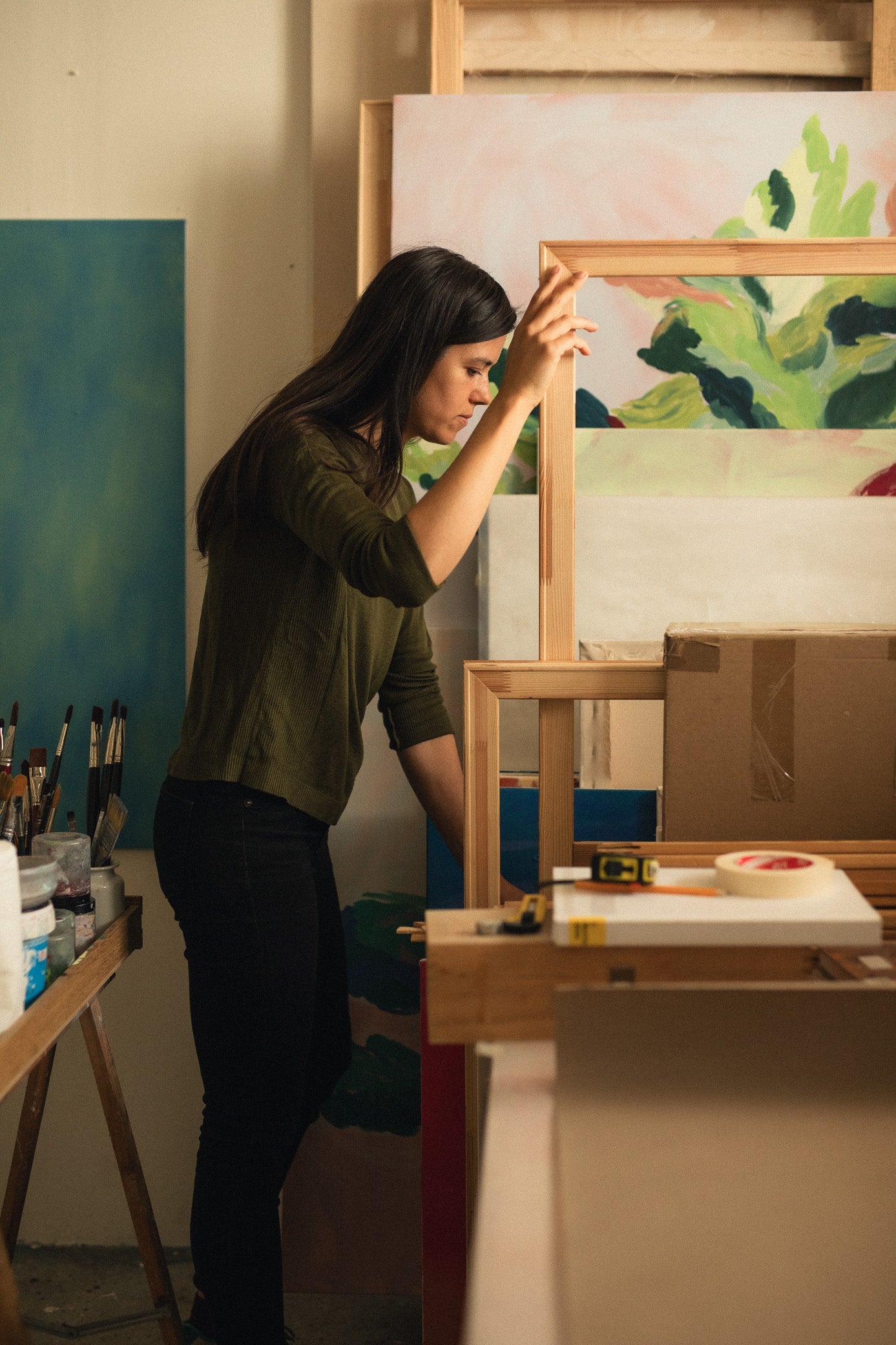 Hanna KL is a Swedish visual artist, designer, and content creator who spreads color and joy through her flourishing art and creative home. She is known for her distinctive flowers and abstract palms, inspired by both her Scandinavian roots and her many travels to Los Angeles – her second home.