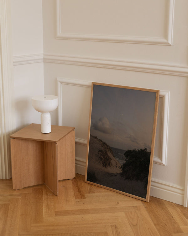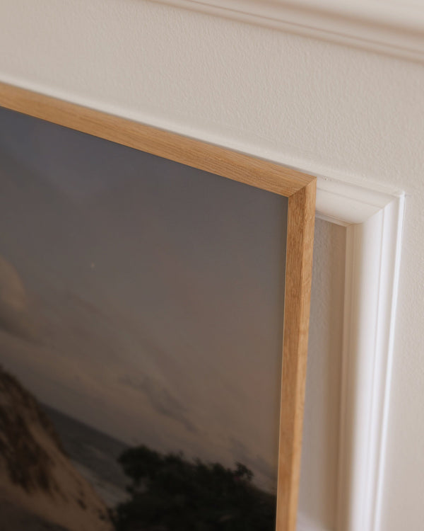 Our frames are made from high-quality materials and are available in solid oak, dark-stained oak, and black-painted pine. All frames come with real glass, while the largest sizes (70 × 100 cm and 100 × 140 cm) feature 2 mm acrylic glass, which looks like glass but is lighter and more shatter-resistant (durable).