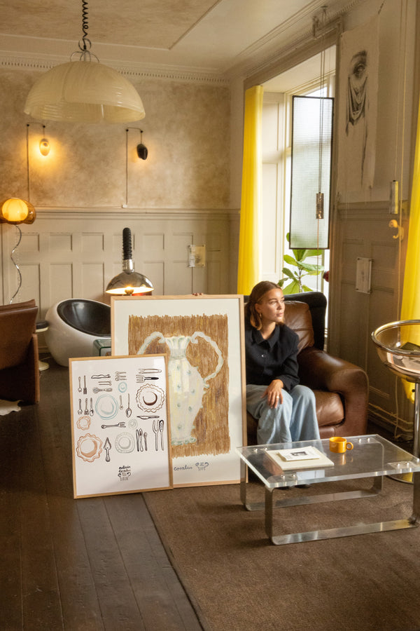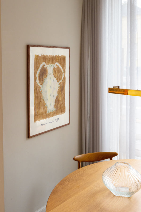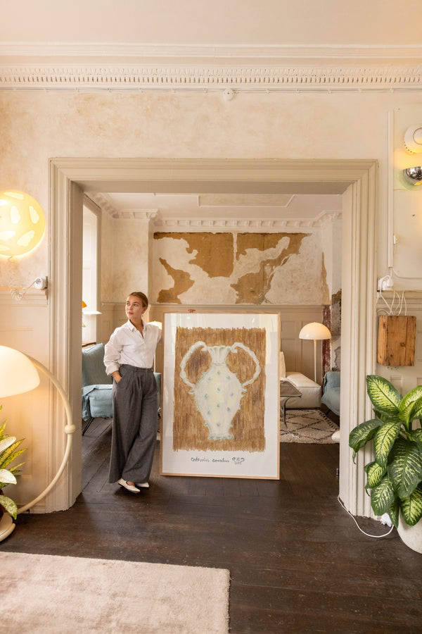 Cathrin Coralus kunstplakat "Amphora" er en del af en farverig kollektion skabt eksklusivt til Peléton. Motiverne hylder legende kompositioner, stærke farver og Cathrins finurlige billedunivers, hvor sentimentale temaer og en kunstnerisk lethed går hånd i hånd.