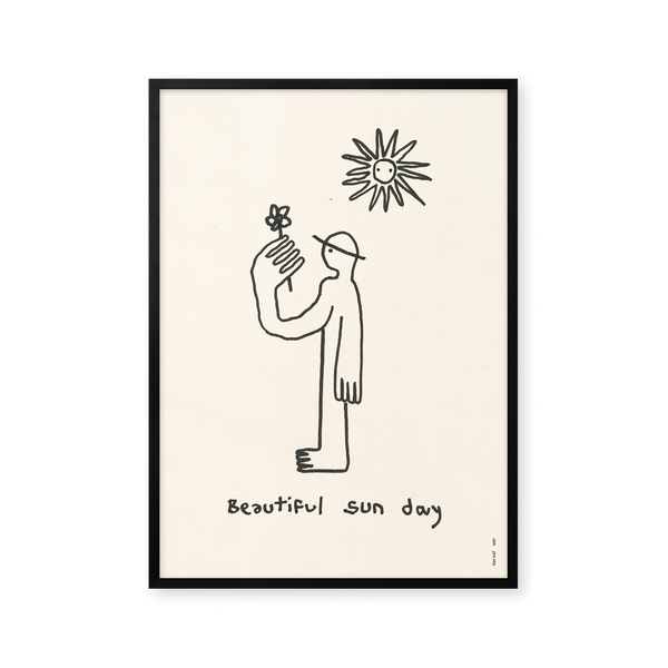 The art poster: “Beautiful Sunday” by the artist Eden Kalif is a graphically illustrated poster curated by Peléton. It has been meaningful to her that the poster is open to interpretation.