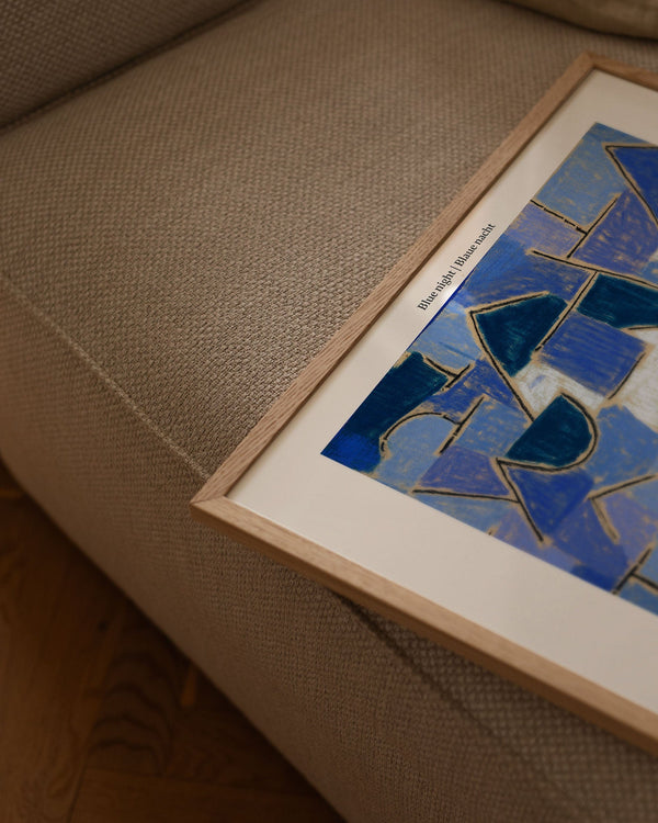 The art print: “Blue night” by the artist Paul Klee is an abstract illustrated print, recreated by Peléton. This print series with Paul Klee's colorful and abstract art prints is characterized by his inventive and unique techniques. This print is part of Peléton's vintage collection with museum layout. The art print is produced on quality paper, with long durability, high opacity, and detailed color reproduction.