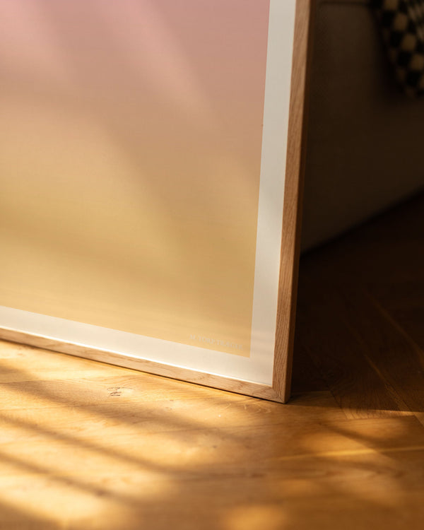 The art print: “Blush” by the artists Mie & Him is a graphically illustrated poster, exclusively made for Peléton. It has been important to them that the poster is open to interpretation. This work is part of a collection of exclusive art prints that express minimalism and simplicity.