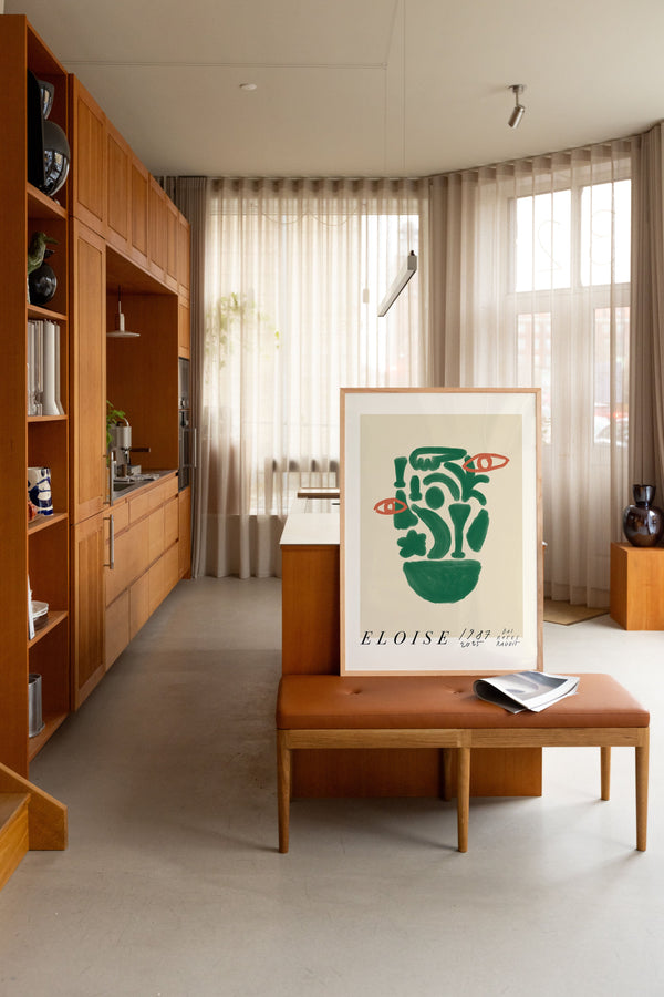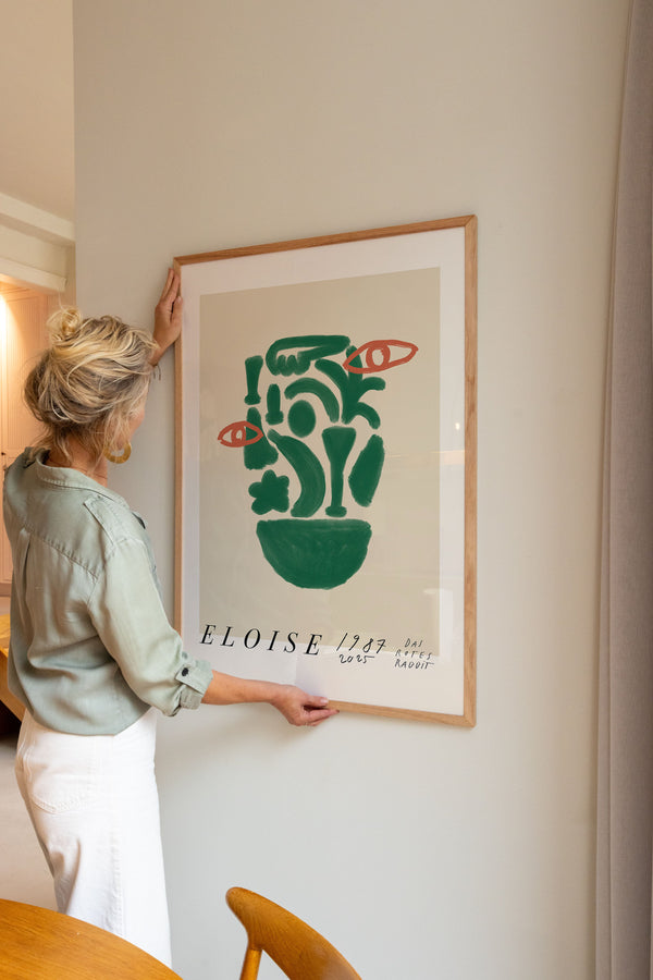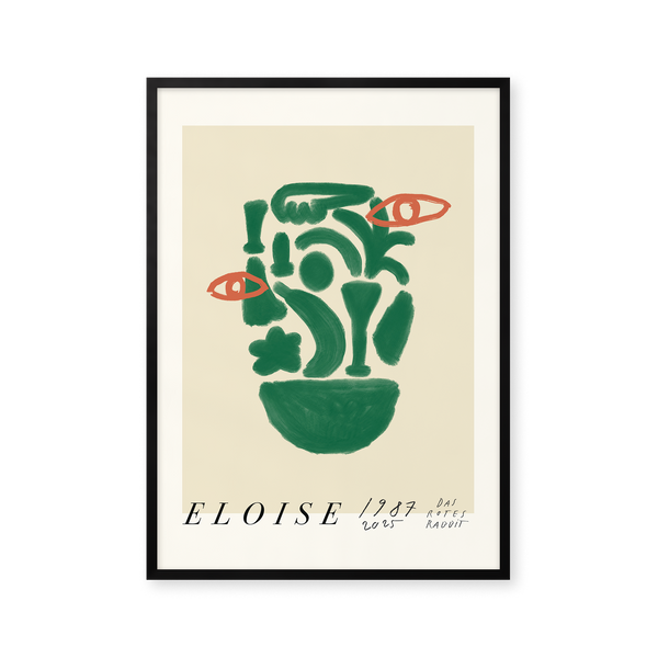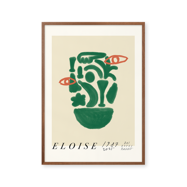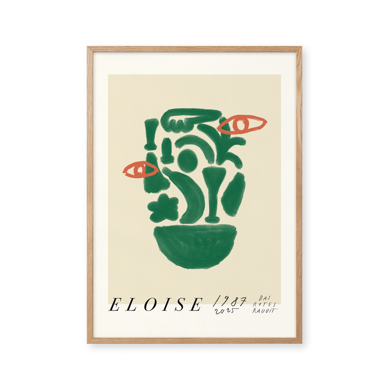 Kunstplakaten: “Eloise Face” er skabt af kunstneren Das Rotes Rabbit og er en del af en kunstserie eksklusivt lavet til Peléton. Serien har karakter og personlighed og fungerer perfekt som et statement piece eller i samspil med de øvrige værker i serien. Farverne og den minimalistiske stil smelter sammen og skaber et harmonisk udtryk, der tilføjer dybde og elegance til ethvert rum.
