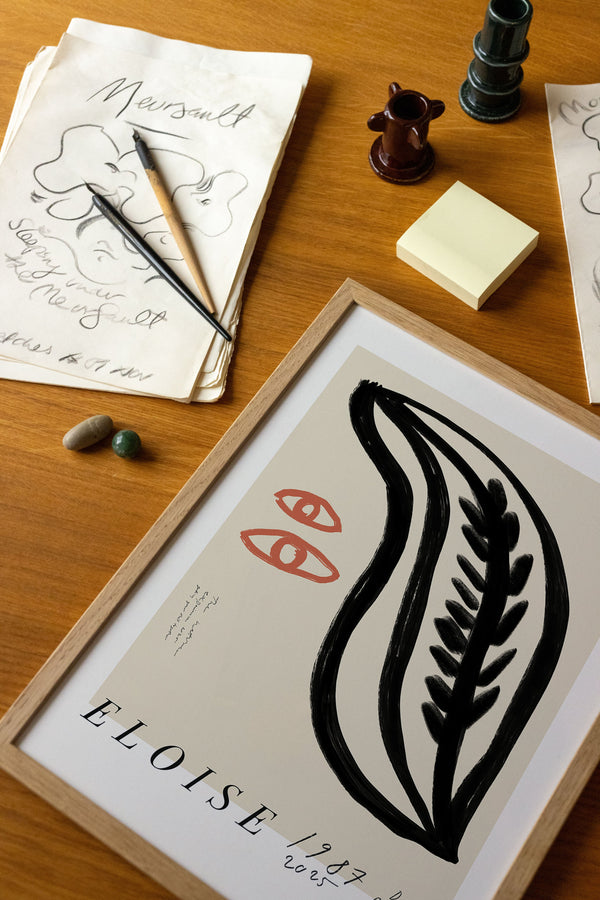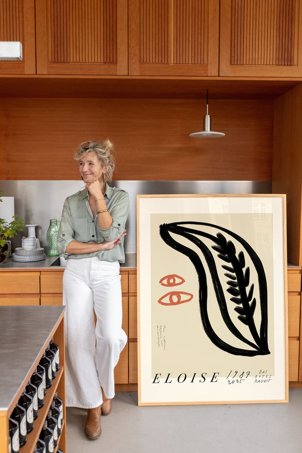 Kunstplakaten: “Eloise Leaf” er skabt af kunstneren Das Rotes Rabbit og er en del af en kunstserie eksklusivt lavet til Peléton. Serien udstråler har og personlighed og fungerer perfekt som et statement piece eller i samspil med de øvrige værker i serien. Farverne og den minimalistiske stil smelter sammen og skaber et harmonisk udtryk, der tilføjer dybde og elegance til ethvert rum.