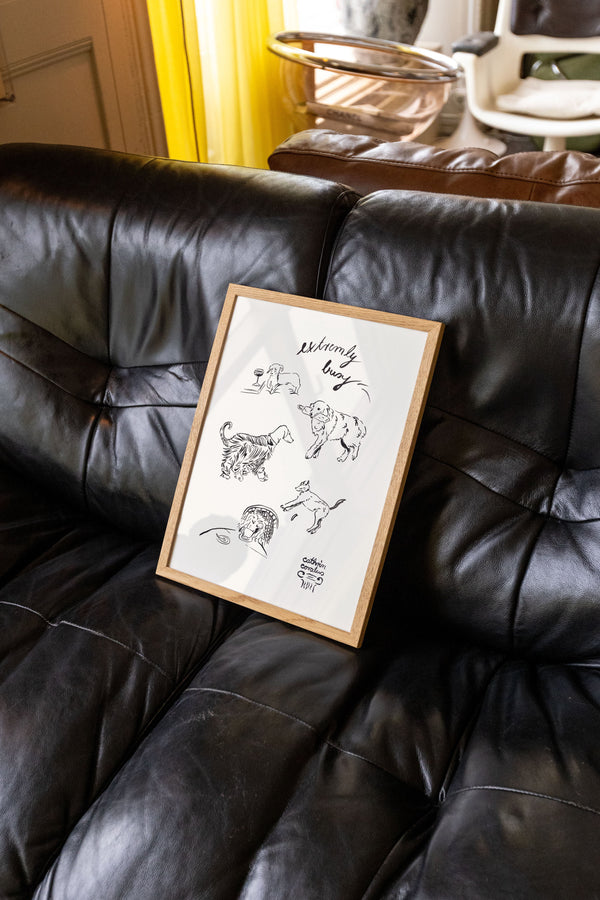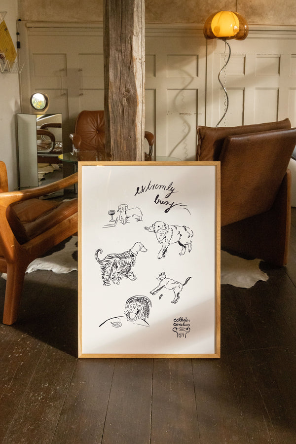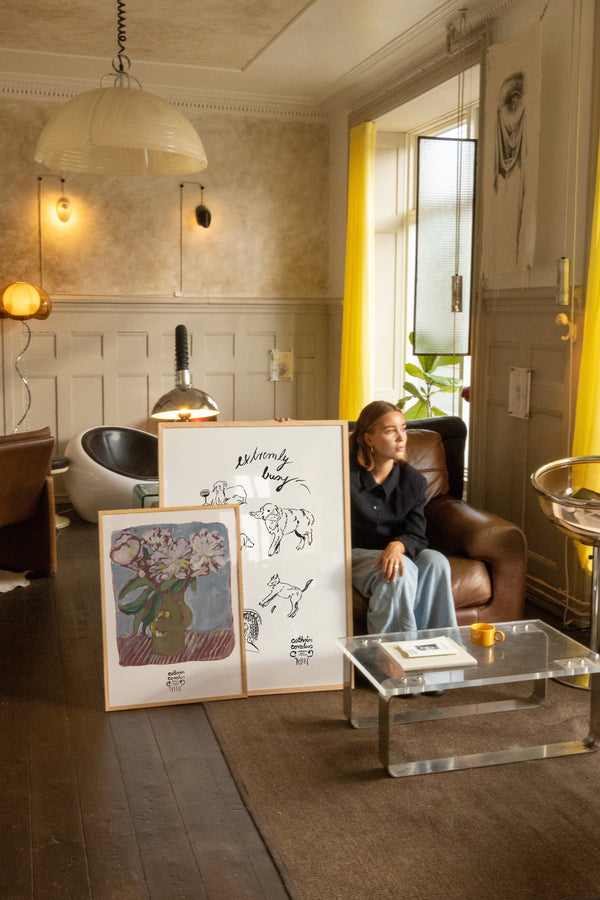 Cathrin Coralus kunstplakat "Extremely Busy" er en del af en farverig kollektion skabt eksklusivt til Peléton. Motiverne hylder legende kompositioner, stærke farver og Cathrins finurlige billedunivers, hvor sentimentale temaer og en kunstnerisk lethed går hånd i hånd.