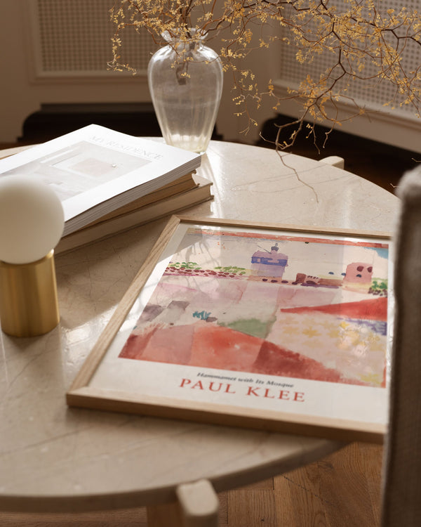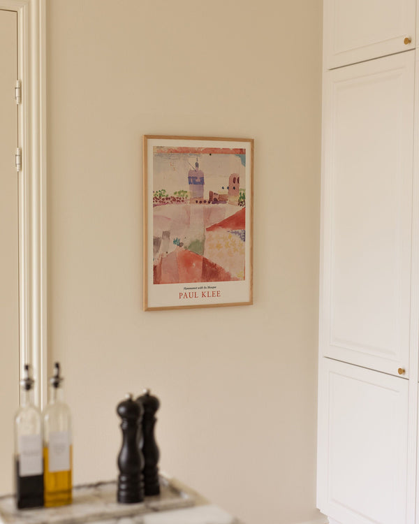The art print: “Hammamet with Its Mosque” by the artist Paul Klee is an abstract illustrated print, recreated by Peléton. This print series with Paul Klee's colorful and abstract art prints is characterized by his inventive and unique techniques. This print is part of Peléton's vintage collection with museum layout. The art print is produced on quality paper, with long durability, high opacity, and detailed color reproduction.