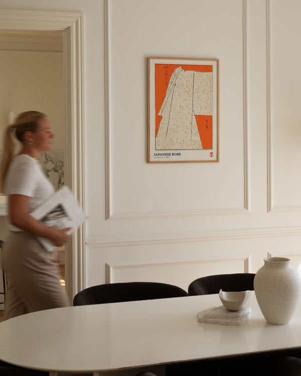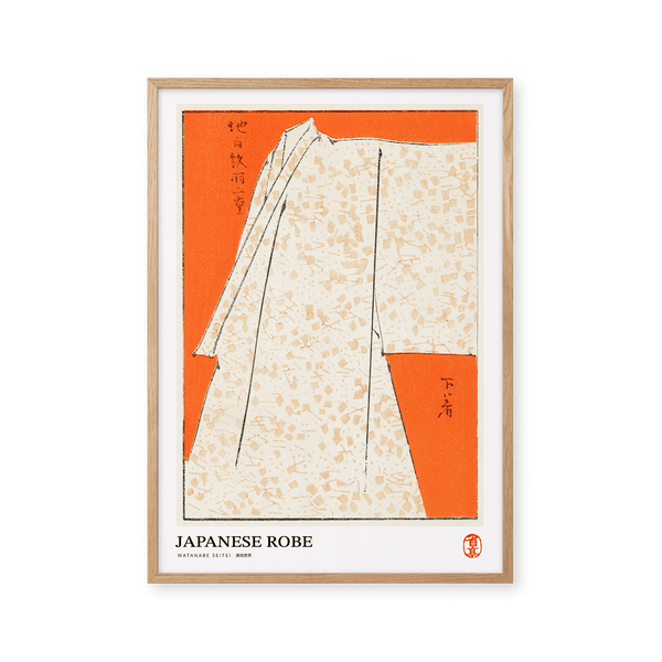 The art print: "Japanese robe" by the artist Watanabe Seitei is a poster that Peléton has recreated from his iconic woodcut. This poster series with Watanabe Seitei art prints is based on his most famous works. This poster is part of Peleton's vintage collection with museum layout. The art print is produced on quality paper with long durability, high opacity, and detailed color reproduction.