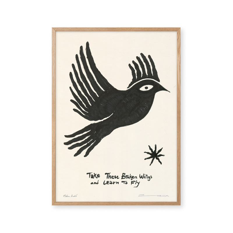 The art poster: “Learn to Fly” by the artist Eden Kalif is a graphically illustrated poster curated by Peléton. It has been meaningful to her that the poster is open to interpretation.