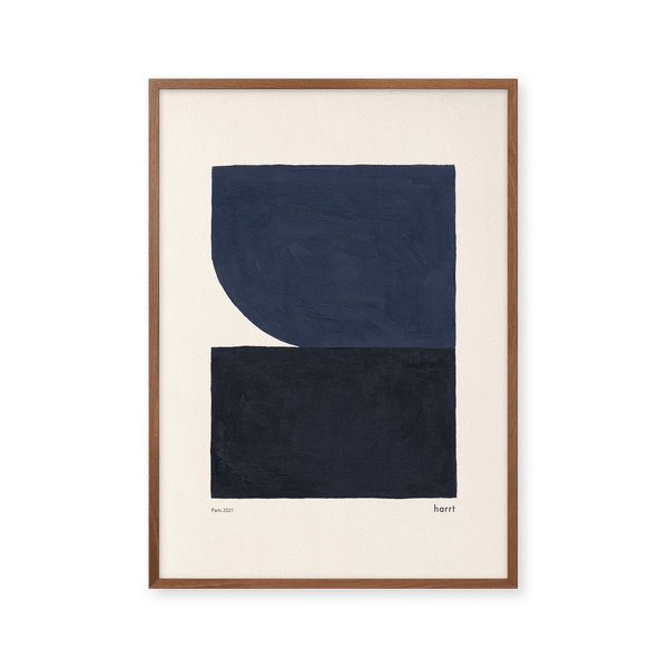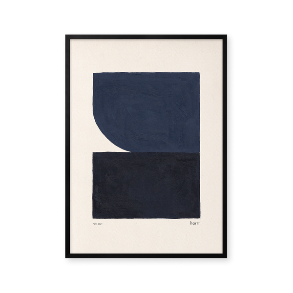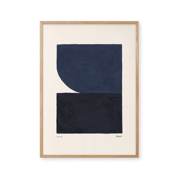The art poster: ""LEO""af Harrt Studio is an abstract poster curated by Peléton. The Leo drawing is inspired by modern art and mainly works around monochromatic research, geometric abstract shapes that blend to create a combination of motifs with a minimalist and clean aesthetic."