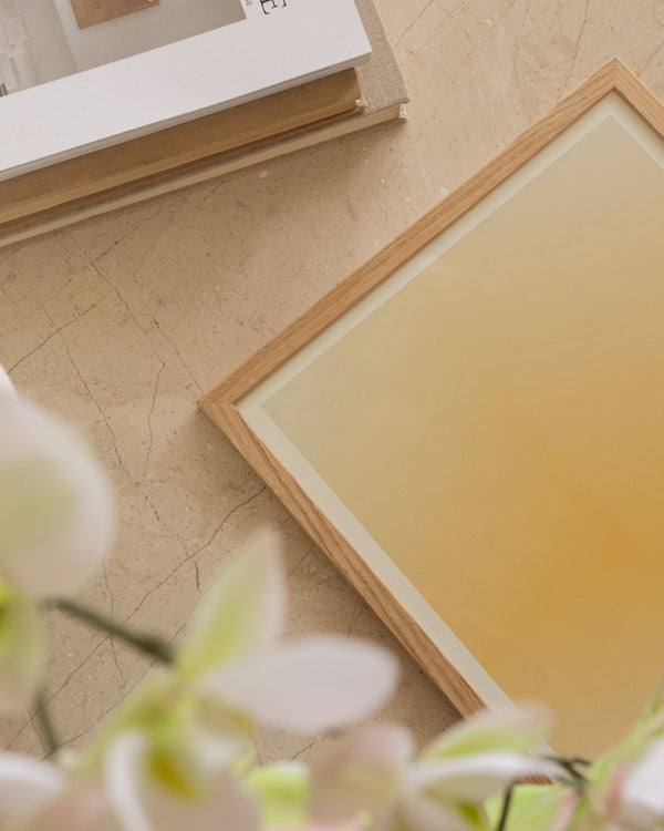 Our frames are made from high-quality materials and are available in solid oak, dark-stained oak, and black-painted pine. All frames come with real glass, while the largest sizes (70 × 100 cm and 100 × 140 cm) feature 2 mm acrylic glass, which looks like glass but is lighter and more shatter-resistant (durable).