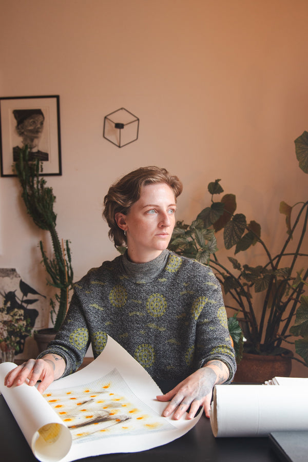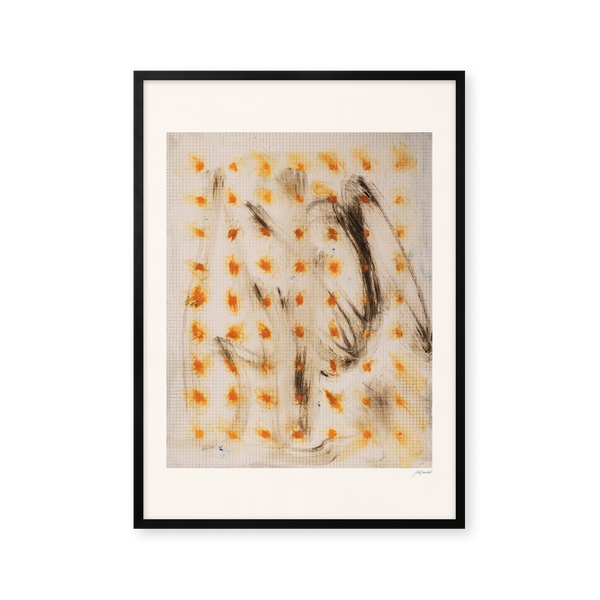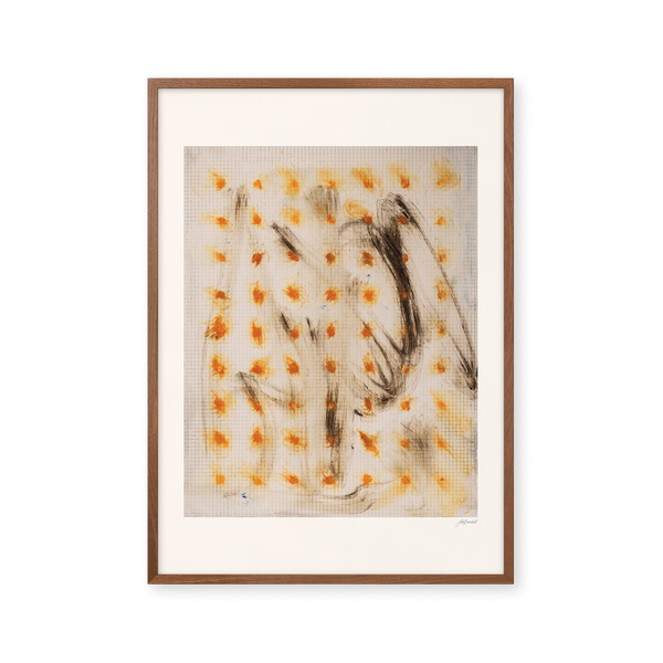 The art poster "Monotype – Rust Orange" is part of Julie Barnes Dahl's exclusive monotype collection for Peléton. The art form monotype is based on the squared mathematics notebook, where the grid creates systematics and repetition, but also opens up a free, dreamy space. The strict pattern contrasts with the deep, soft colors of the printing ink, creating a tension between the tight and the lively. For her, it has been important that the poster is open to free interpretation.