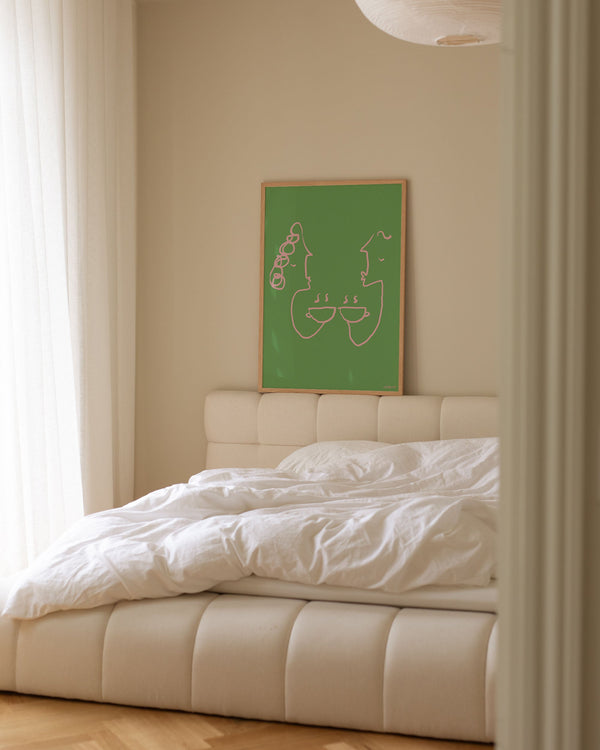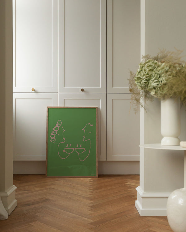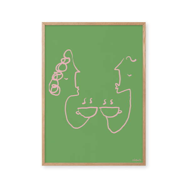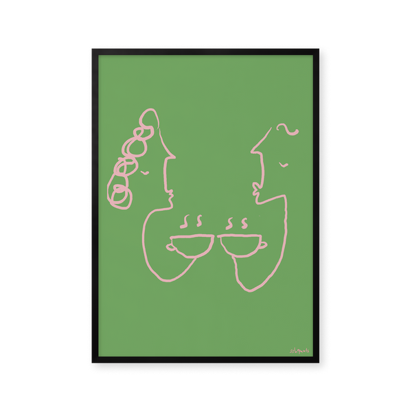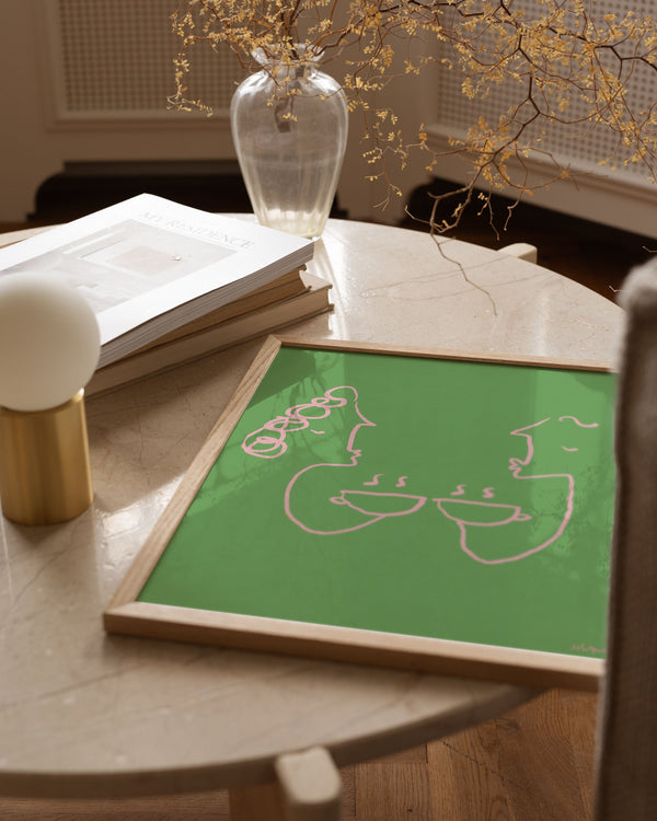 The art poster "MORNING COFFEE" by the artist Ruby Hughes is an illustrated poster curated for Peléton. The art poster is produced on quality paper, with long durability and detailed color reproduction.