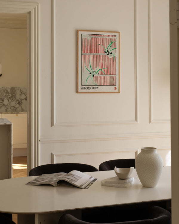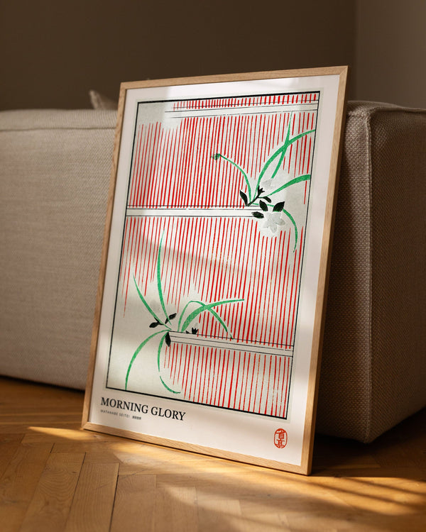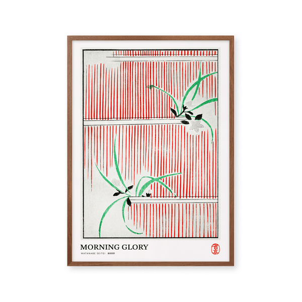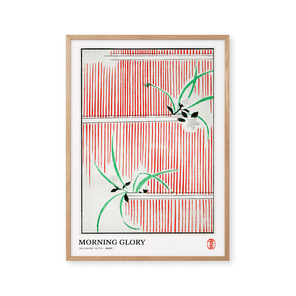 The art print: "Morning glory" by the artist Watanabe Seitei is a poster that Peléton has recreated based on his iconic woodcut. This poster series with Watanabe Seitei art prints is based on his most famous works. This poster is part of Peleton's vintage collection with museum layout. The art print is produced on quality paper with long durability, high opacity, and detailed color reproduction.
