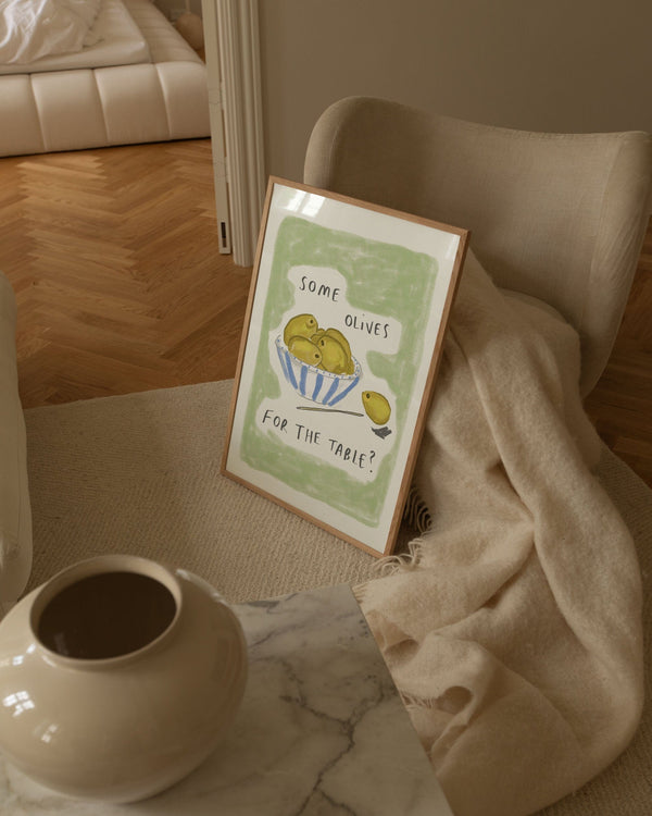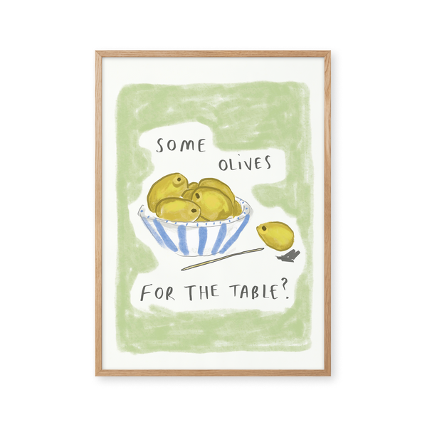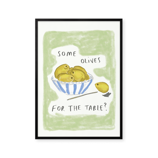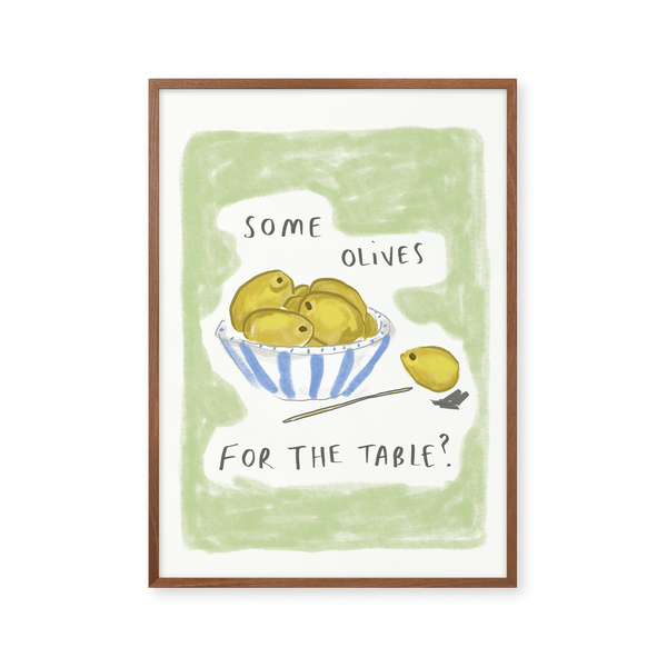The art poster: “Olives” by the artist Lauren Emmett is an illustrated poster curated by Peléton. It has been meaningful to her that the poster is open to interpretation.