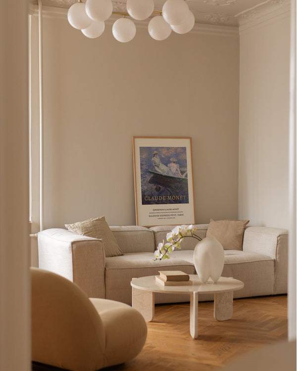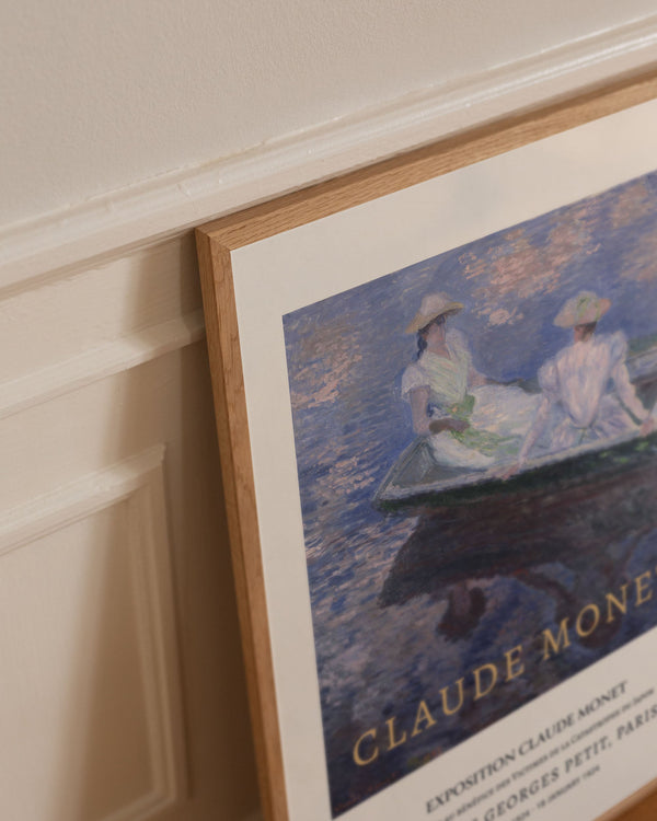 The art print: “On The Boat” by the artist Claude Monet is a painted artwork recreated as a poster by Peléton. This poster collection with Claude Monet's colorful art prints with light colors is characterized by his realistic and impressionistic style. This poster is part of Peléton's vintage collection with museum layout. The art print is produced on quality paper, with long durability, high opacity, and detailed color reproduction.