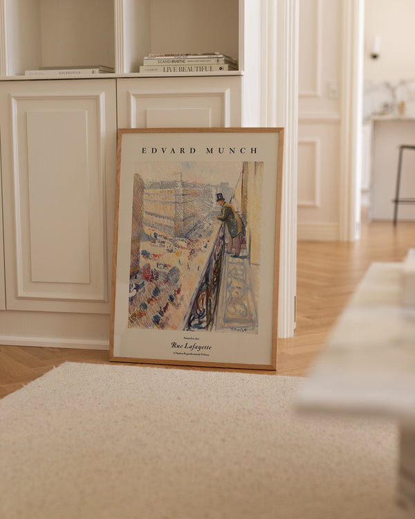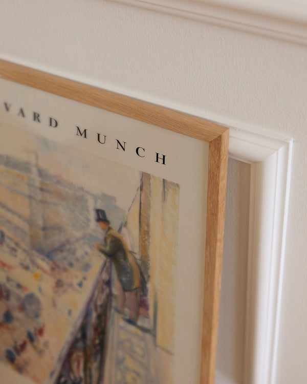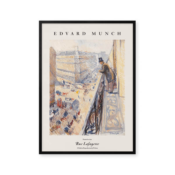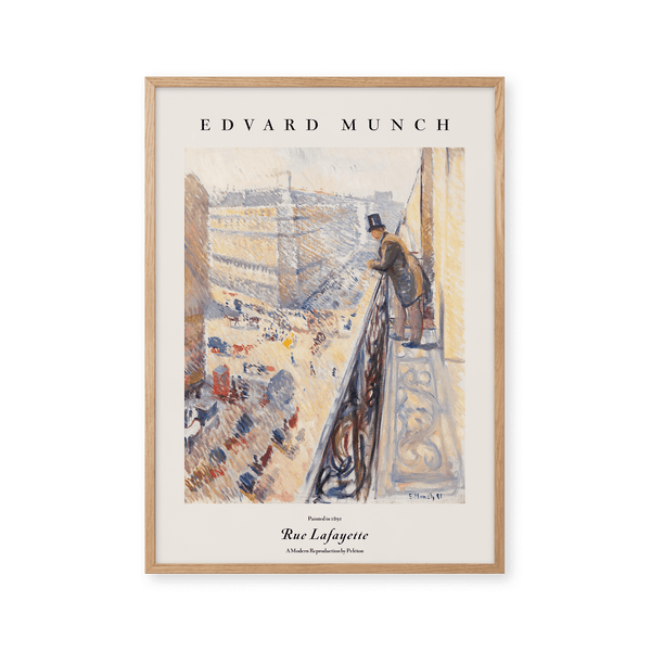 The art print: “Rue Lafayette” by the artist Edvard Munch is a painted poster recreated by Peléton. This poster series with Edvard Munch's unique art prints is characterized by his unique and recognizable style. This poster is part of Peléton's vintage collection with museum layout. The art print is produced on quality paper, with long durability, high opacity, and detailed color reproduction.