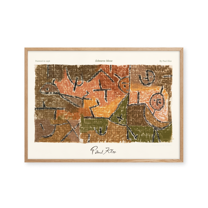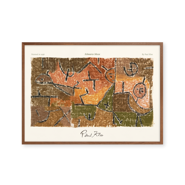Kunstplakaten: “Schwarze Messe” af kunstneren Paul Klee er en illustreret plakat, der er genskabt af Peléton. Denne plakat er en del af Pelétons vintage kollektion med museums layout. Kunstplakaten er produceret på kvalitetspapir, med lang levetid, høj gennemtræk og detaljerig farvegengivelse.