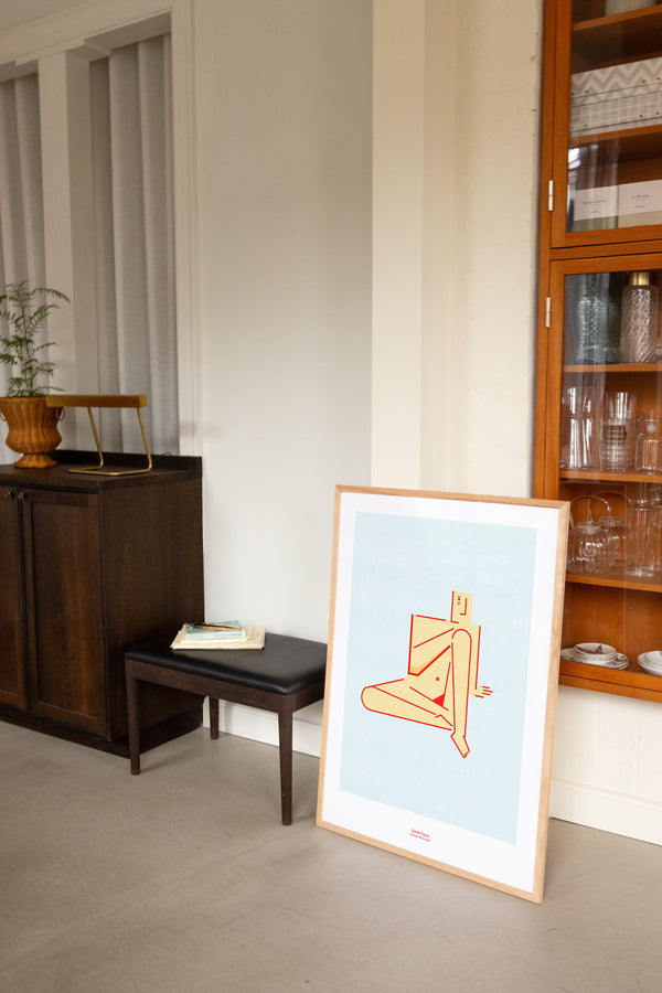 Kunstplakaten: “Seated Figure” af kunstneren Humam Abou Asali er en illustreret plakat der er eksklusivt lavet til Peléton. Det har været betydningsfuldt for Humam Abou Asali, at plakaten står til fri fortolkning.