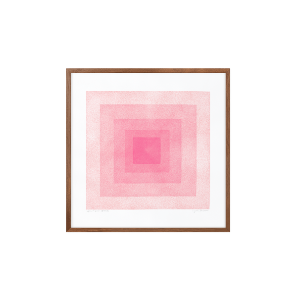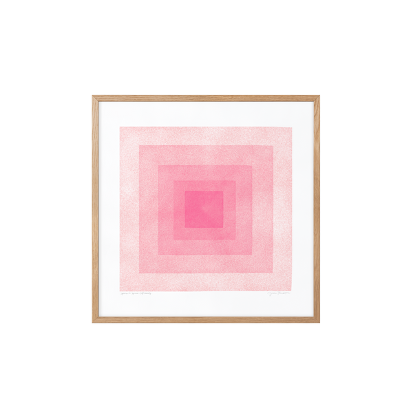 The art print: “Soft Geometry: Squares In Squares, Blush” by the artists Jessica Pundstone is a graphic illustrated poster, exclusively made for Peléton. It has been important to them that the poster is open to interpretation. This work is part of a collection of exclusive art prints that express minimalism and simplicity.