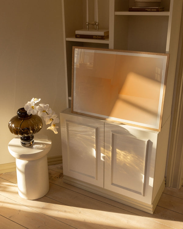 The Frames in oak are made of solid oak. The dark variant is stained to achieve a deep, warm tone, while the black Frame is made of black-painted pine with the same elegant profile.