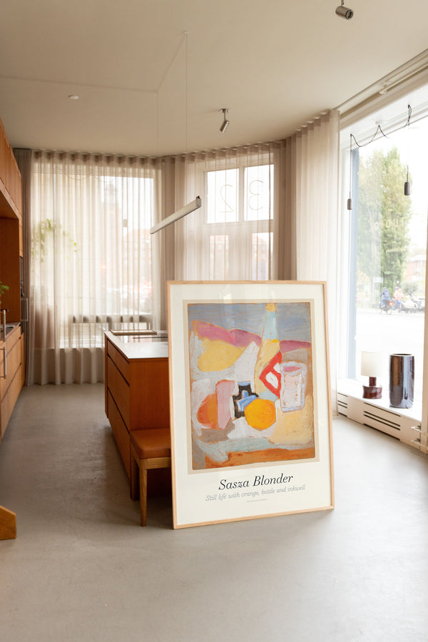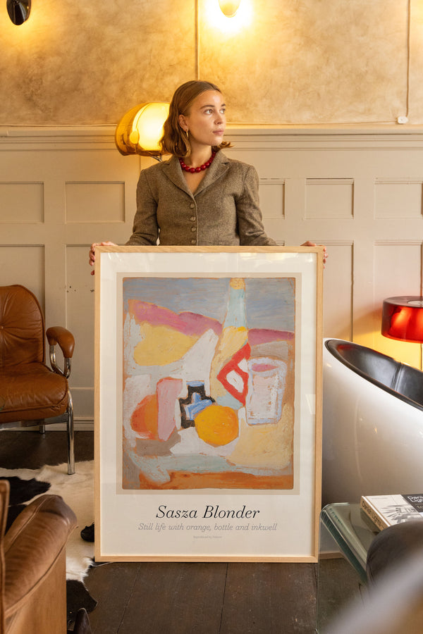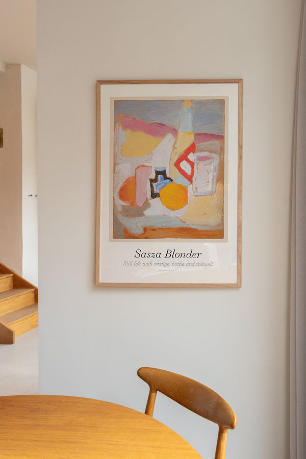 Kunstplakaten: “Still Life with Orange, Bottle and Inkwell” af Sasza Blonder er en illustreret plakat, der er genskabt af Peléton. Denne plakat er en del af Pelétons vintage kollektion med museums layout. Kunstplakaten er produceret på kvalitetspapir, med lang levetid, høj gennemtræk og detaljerig farvegengivelse.