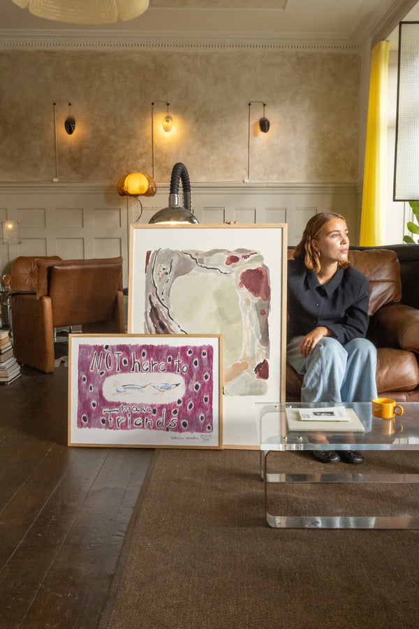 Cathrin Coralus kunstplakat "Stone Hues" er en del af en farverig kollektion skabt eksklusivt til Peléton. Motiverne hylder legende kompositioner, stærke farver og Cathrins finurlige billedunivers, hvor sentimentale temaer og en kunstnerisk lethed går hånd i hånd.