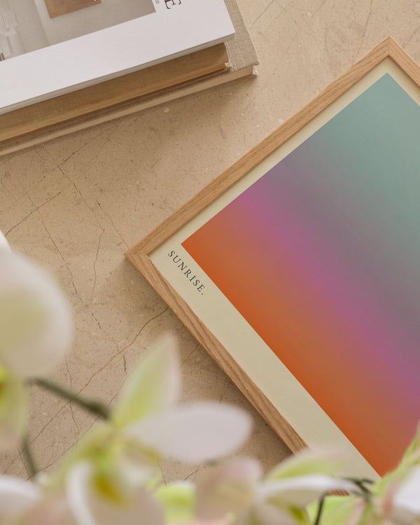 Our frames are made from high-quality materials and are available in solid oak, dark-stained oak, and black-painted pine. All frames come with real glass, while the largest sizes (70 × 100 cm and 100 × 140 cm) feature 2 mm acrylic glass, which looks like glass but is lighter and more shatter-resistant (durable).