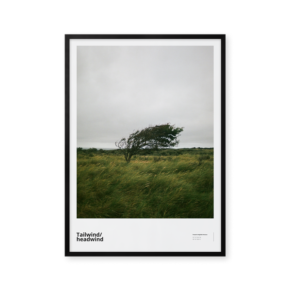 The art poster: “Tailwind / headwind” by the artist Frederik Højfeldt is a photo poster made exclusively for Peléton. It has been meaningful for Frederik Højfeldt that the poster is open to interpretation.