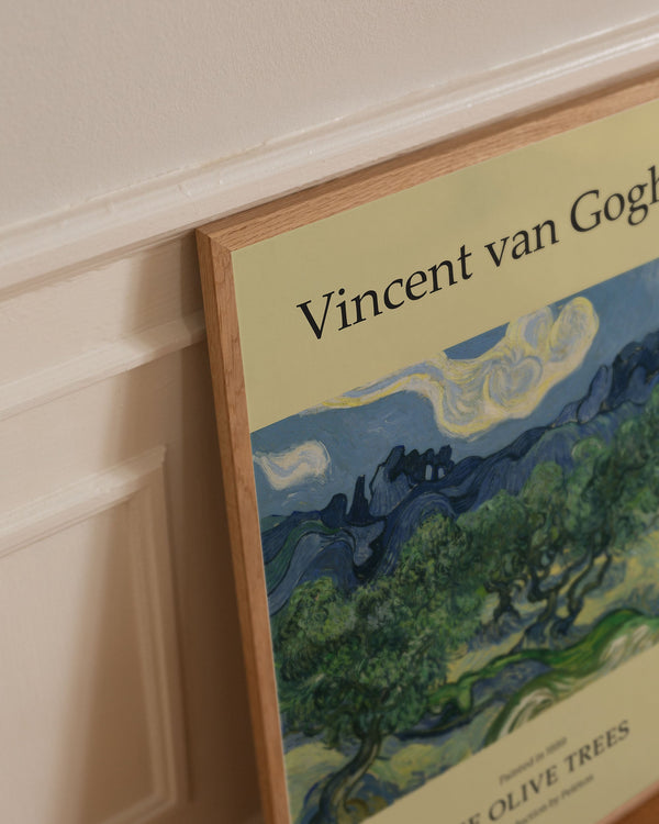 Our frames are made from high-quality materials and are available in solid oak, dark-stained oak, and black-painted pine. All frames come with genuine glass, while the largest sizes (70 × 100 cm and 100 × 140 cm) feature 2 mm acrylic glass that looks like glass but is lighter and more shatter-resistant.