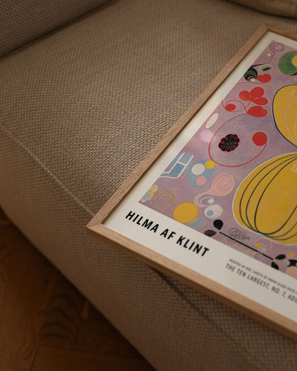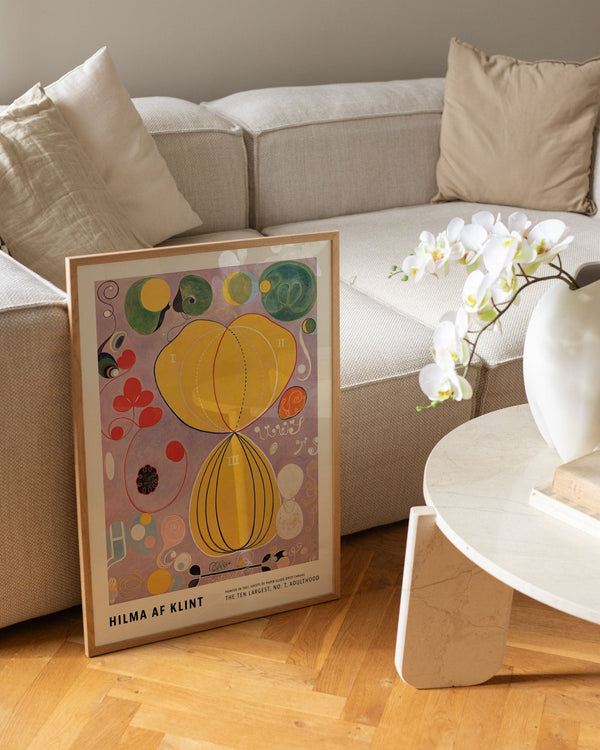 The art print: “The Ten Largest, No. 7, Adulthood” by artist Hilma af Klint is an abstract illustrated print, recreated by Peléton. This print series with Hilma af Klint's unique and abstract art prints is characterized by her inventive and personal expression. This print is part of Peléton's vintage collection with museum layout. The art print is produced on quality paper, with long durability, high opacity, and detailed color reproduction.