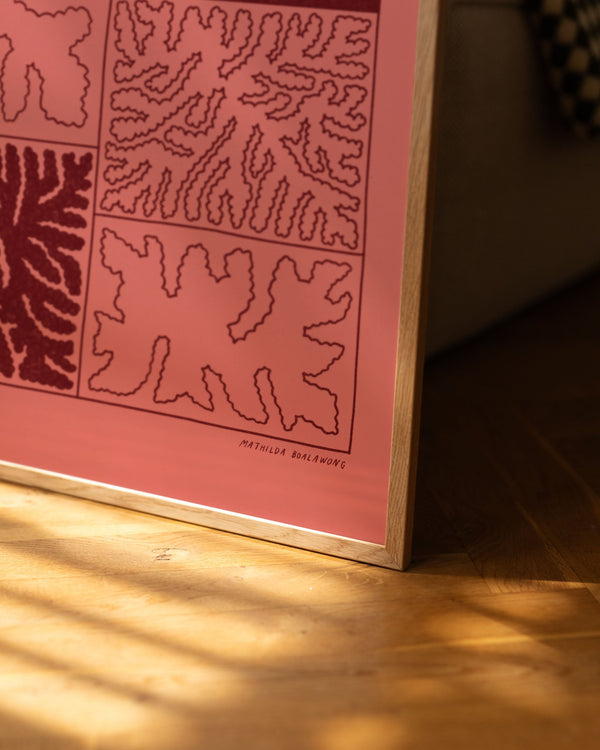 The art print: “Mille Pink” by the artists Mathilda Boalawong is a graphically illustrated poster exclusively made for Peléton. It has been meaningful to them that the poster is open to interpretation. This work is part of a collection of exclusive art prints that express minimalism and simplicity.