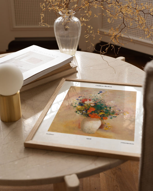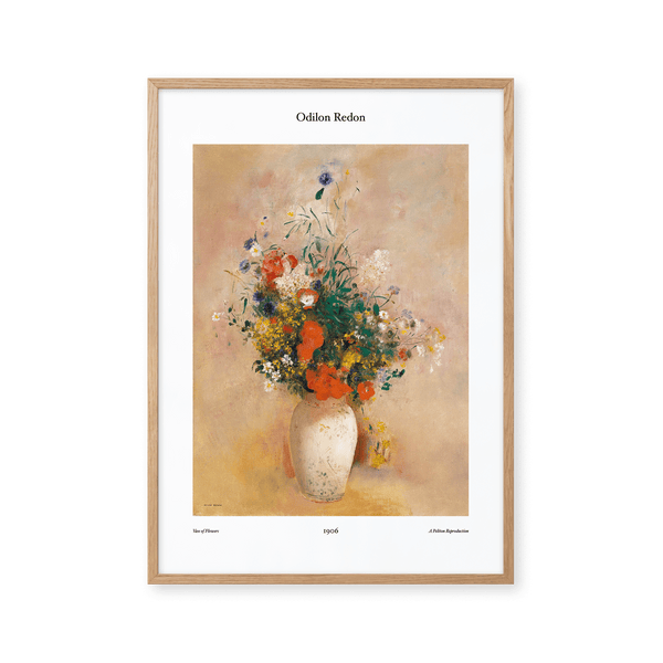 The art print: "Vase of Flowers - Pink Background" by the artist Odilion Redon is a painted print, recreated by Peléton. This print series with Odilion Redon's art prints is characterized by his detailed paintings of colorful flowers. This print is part of Peleton's vintage collection with museum layout. The art print is produced on quality paper with long durability, high opacity, and detailed color reproduction.
