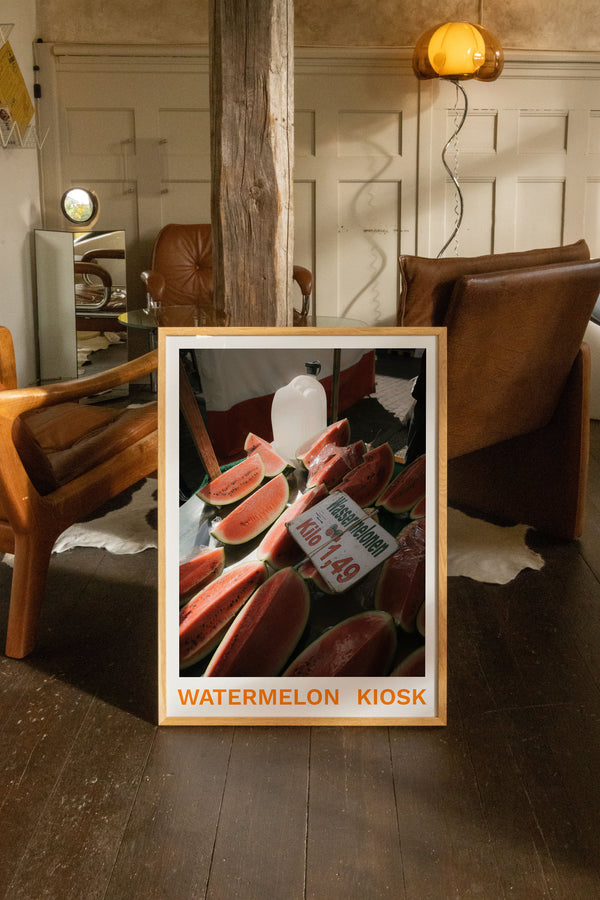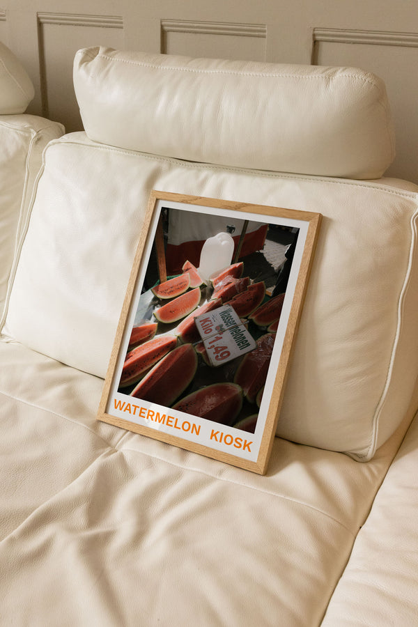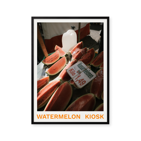 The art print: “Watermelon Kiosk” by the artists Frederik Højfeldt is a graphically illustrated print exclusively made for Peléton. It has been important to them that the print is open to interpretation. This work is part of a collection of exclusive art prints that express minimalism and simplicity.
