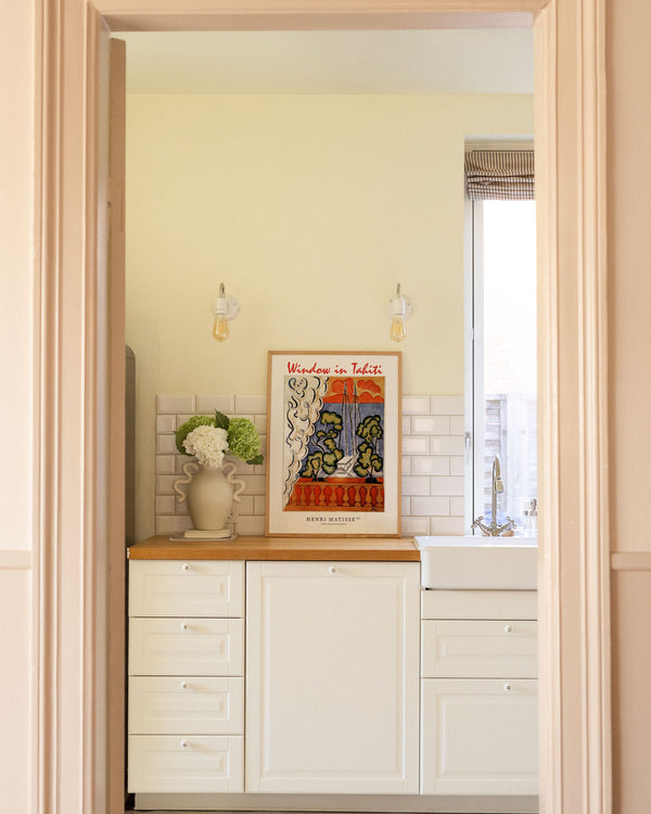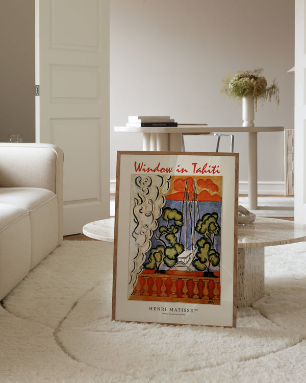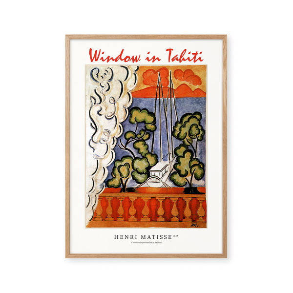 The art poster: "Window in Tahiti" by the artist Henri Matisse is a painted poster recreated by Peléton. This poster is part of Peléton's vintage collection with a museum layout. The art poster is produced on quality paper, with long durability, high opacity, and detailed color reproduction.